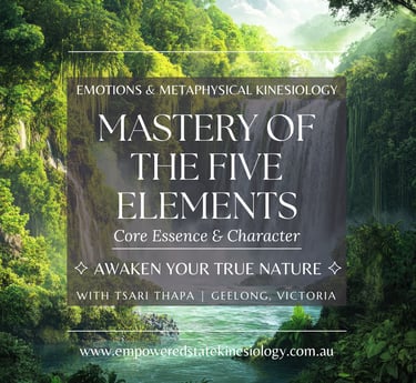 Begin your journey with Emotions and Metaphysical Kinesiology™ - a heart-centred, yin-focused, remedy-based kinesiology modality that empowers you to explore the emotional and metaphysical connections within the mind, body and soul.